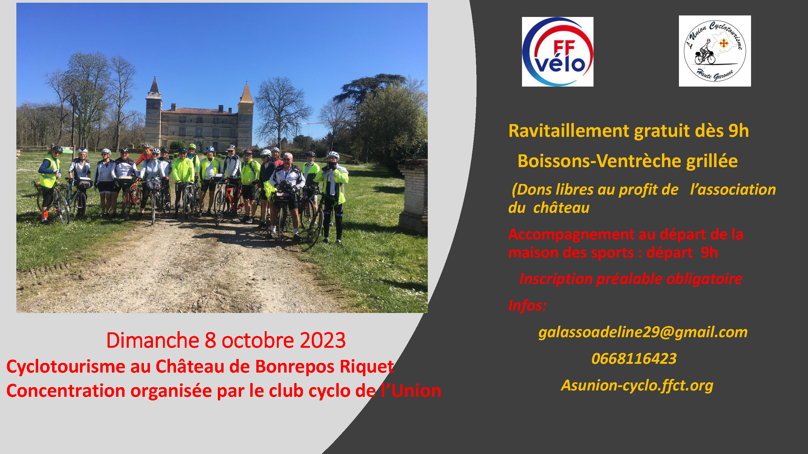 Concentration des « Collines du Nord Toulousain » le Dimanche 8 Octobre Le club de cyclotourisme de l’Union vous invite à participer à sa concentration le Dimanche 8 Octobre 2 parcours tracés sur Open runner vous feront découvrir les Collines du Nord Toulousain. Ces 2 parcours vallonnés vous feront découvrir des villages pittoresques à la […]