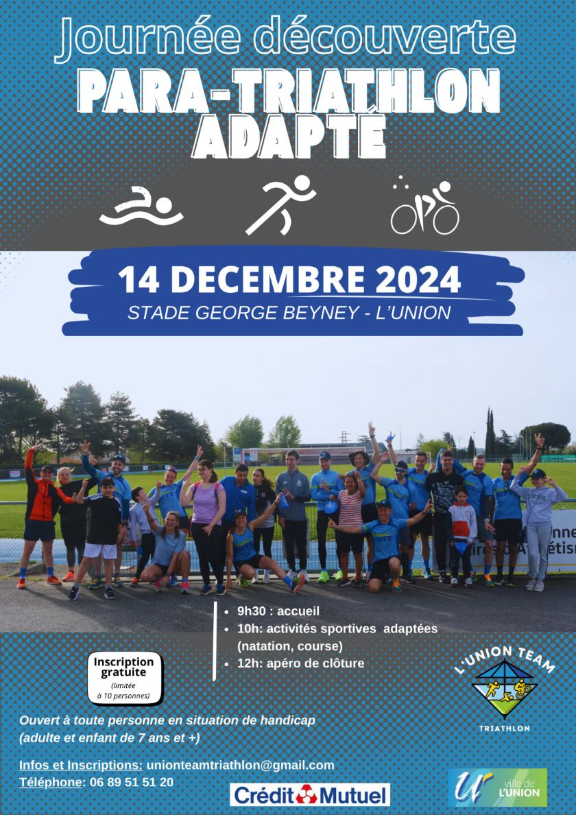 L'Union Team Triathlon organise sa deuxième édition "découverte du Para-Triathlon Adapté" le samedi 14 décembre 2024. Cette découverte est destinée aux personnes en situation de handicap, à partir de 7 ans (jeunes, et adultes). Elle se limite à la pratique de la natation et de la course à pied. Les lieux de pratique sont les […]