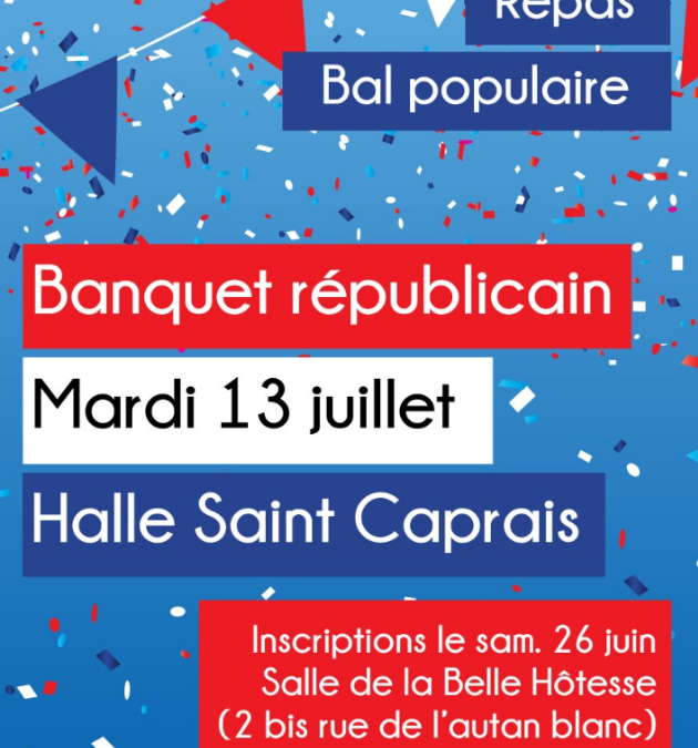 Le traditionnel Banquet Républicain du 13 juillet se tiendra cette année à la Halle Saint Caprais.