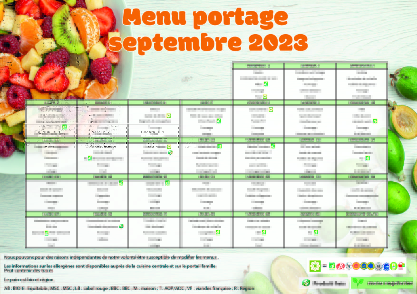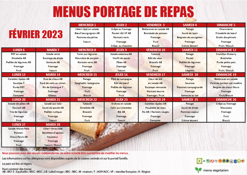 RETROUVEZ CHAQUE MOIS LE MENU DES PORTAGES DE REPAS