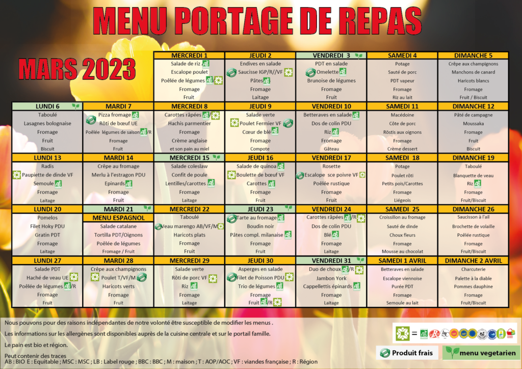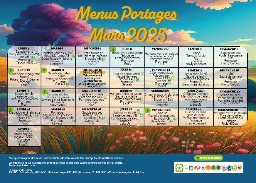 MENU PORTAGE MARS 2025