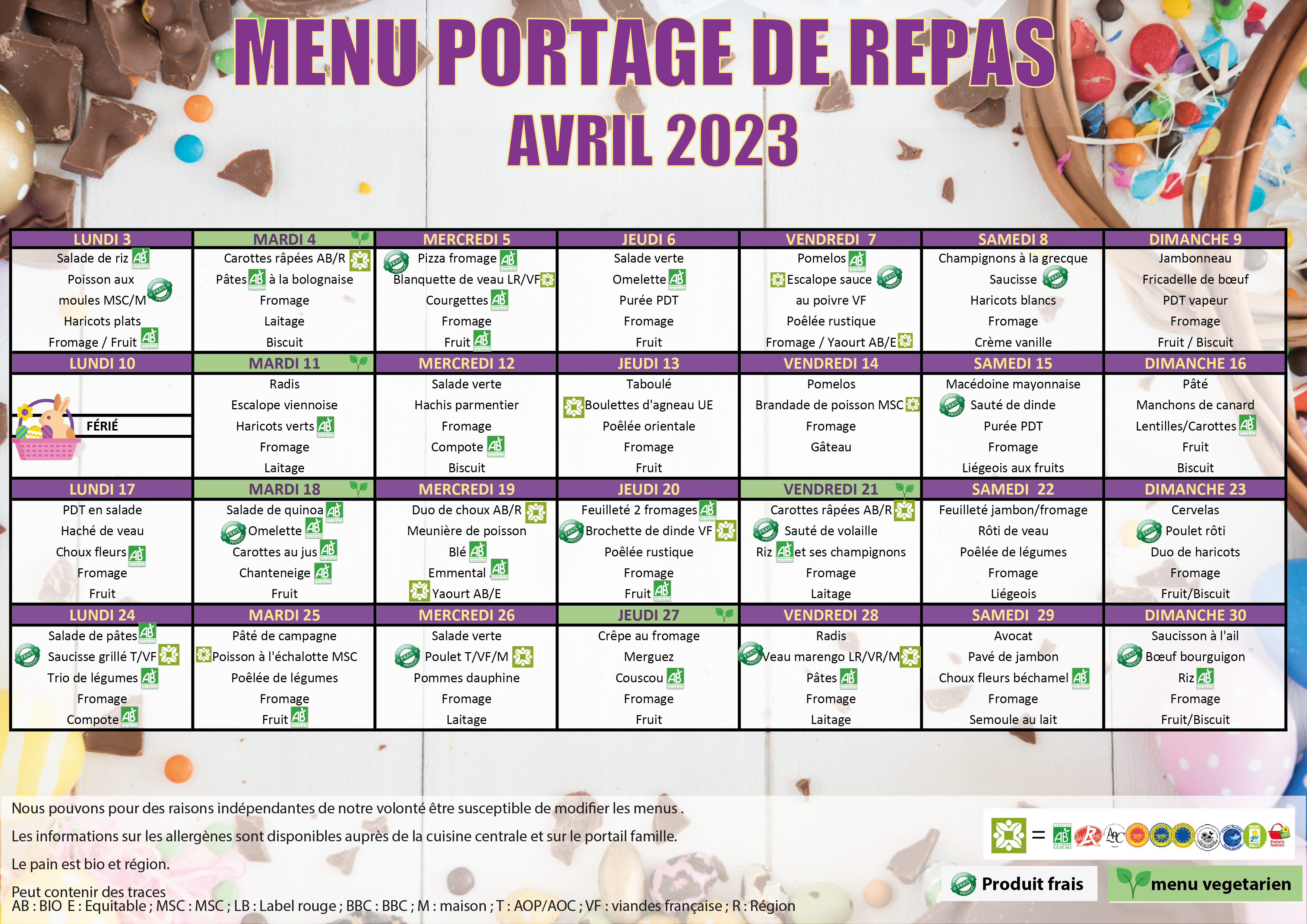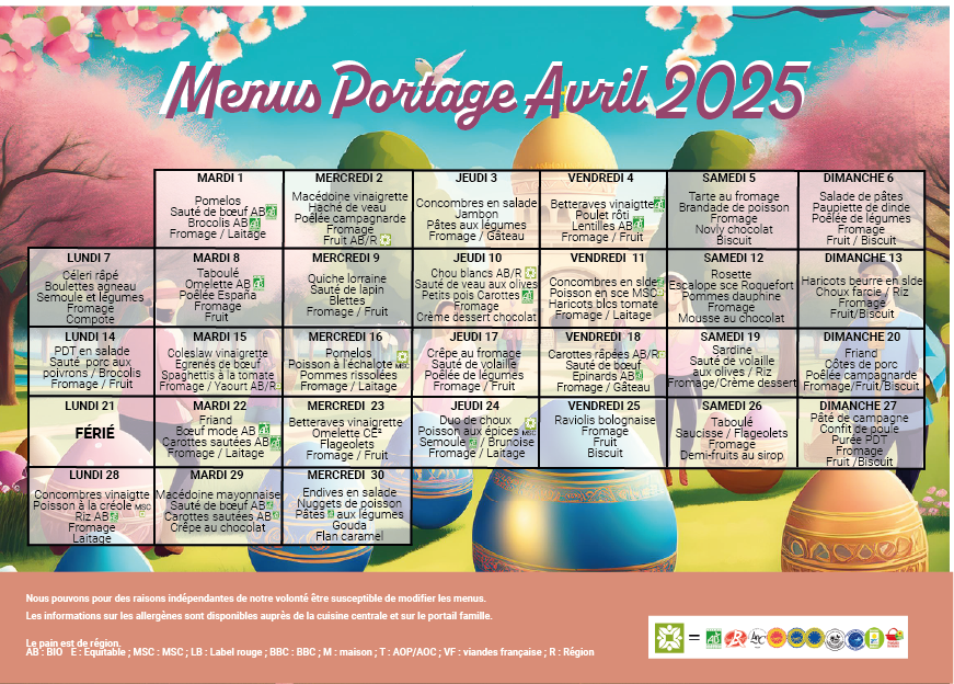 MENU PORTAGE AVRIL 2025