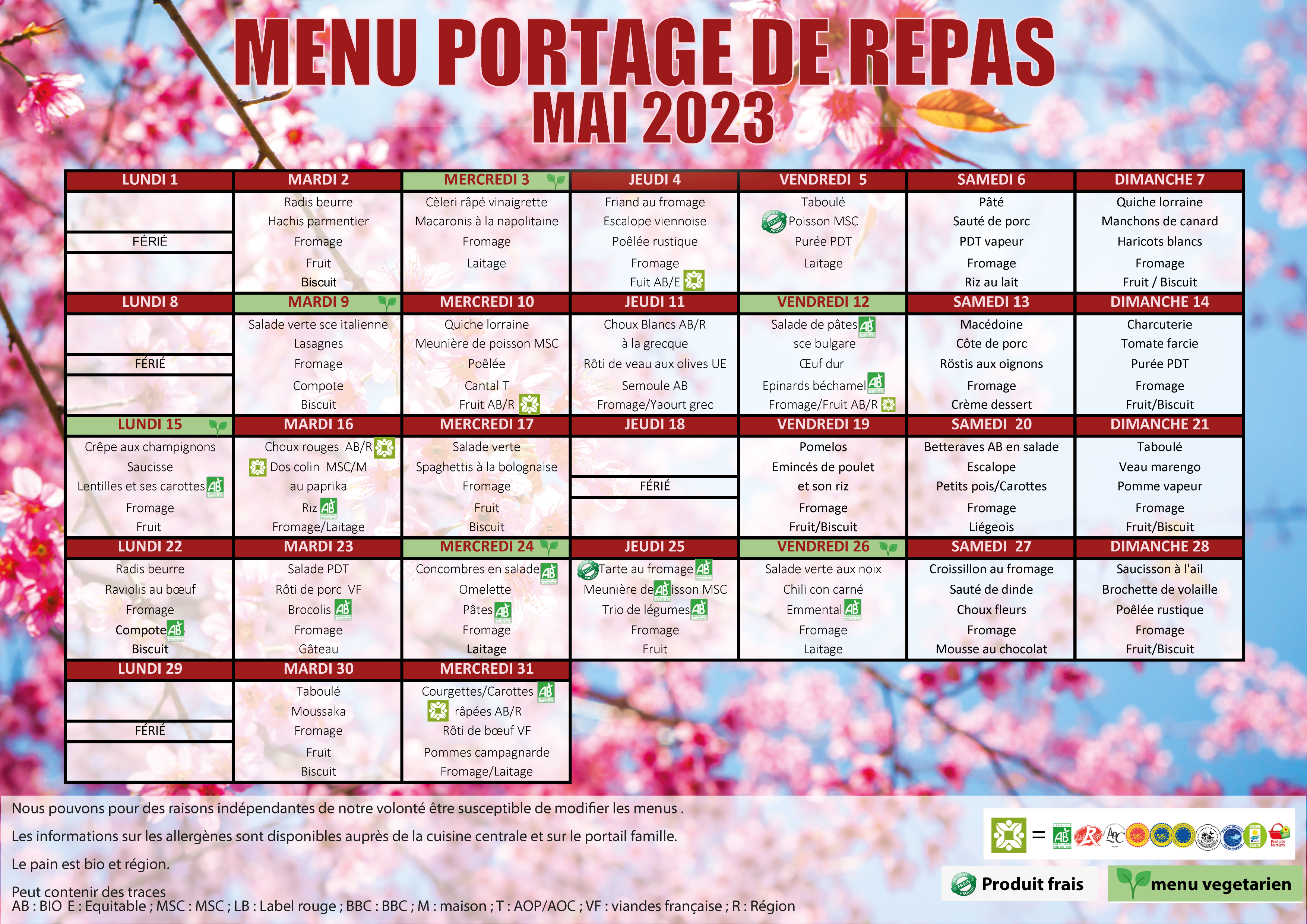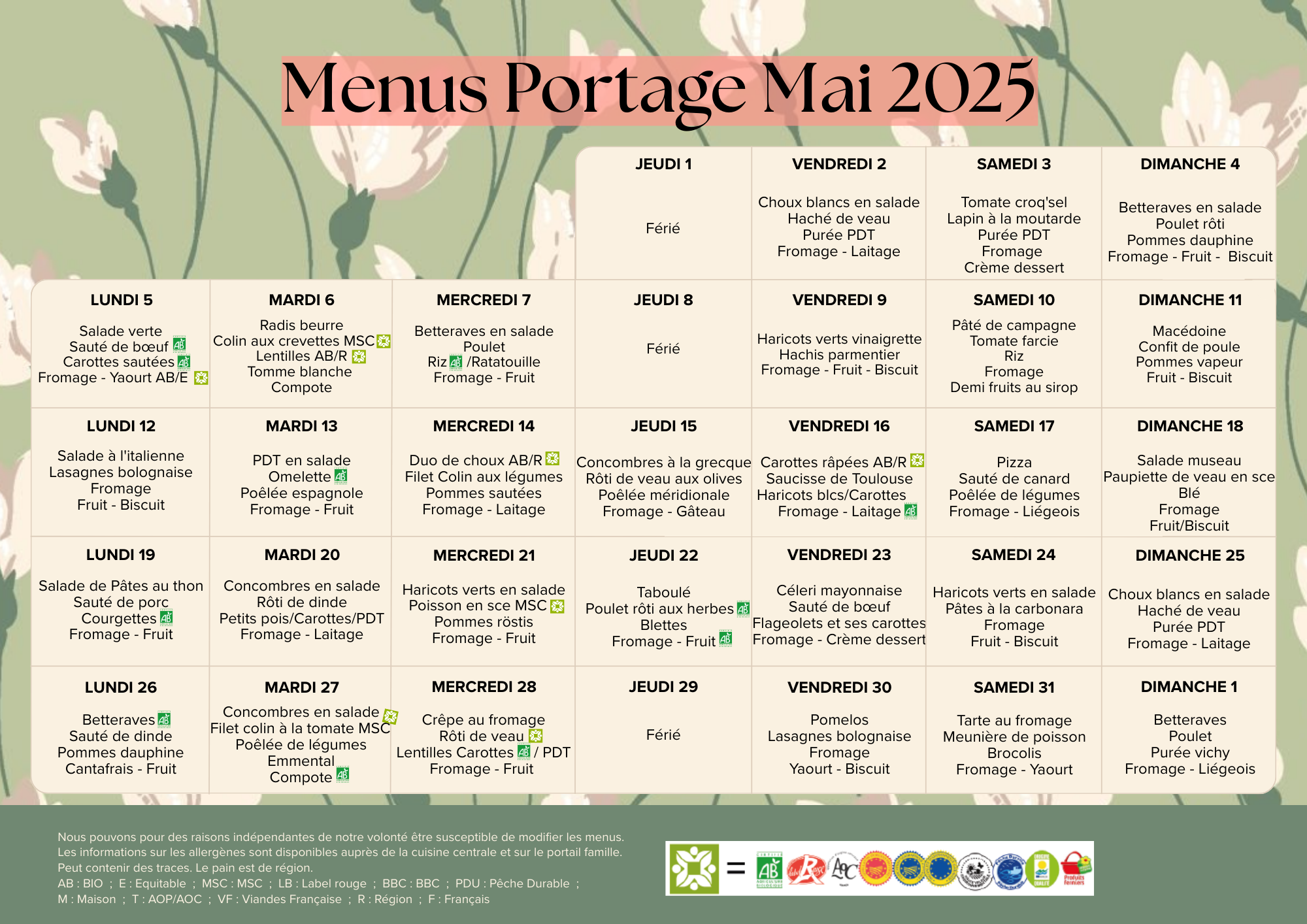 MENU PORTAGE MAI 2025