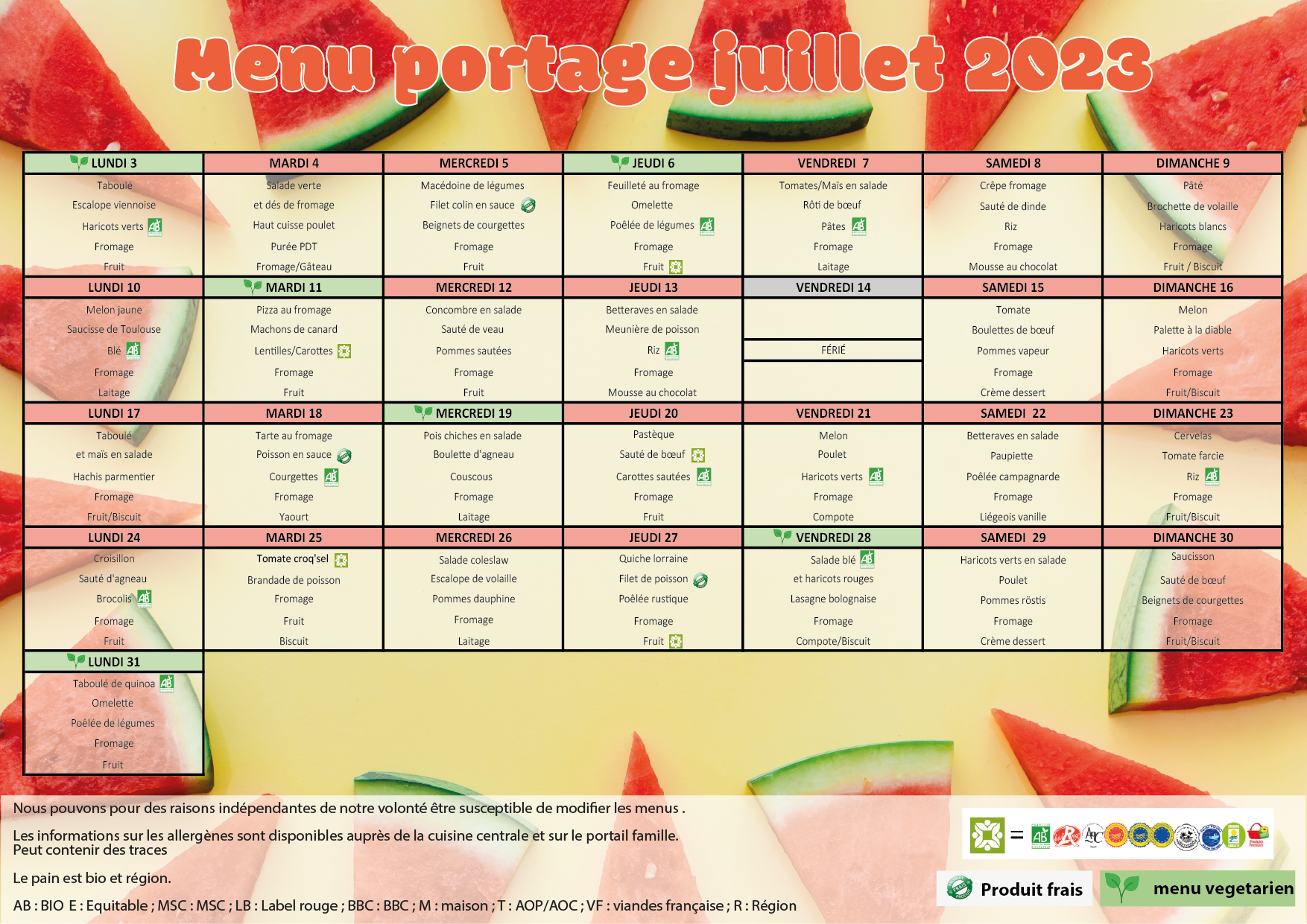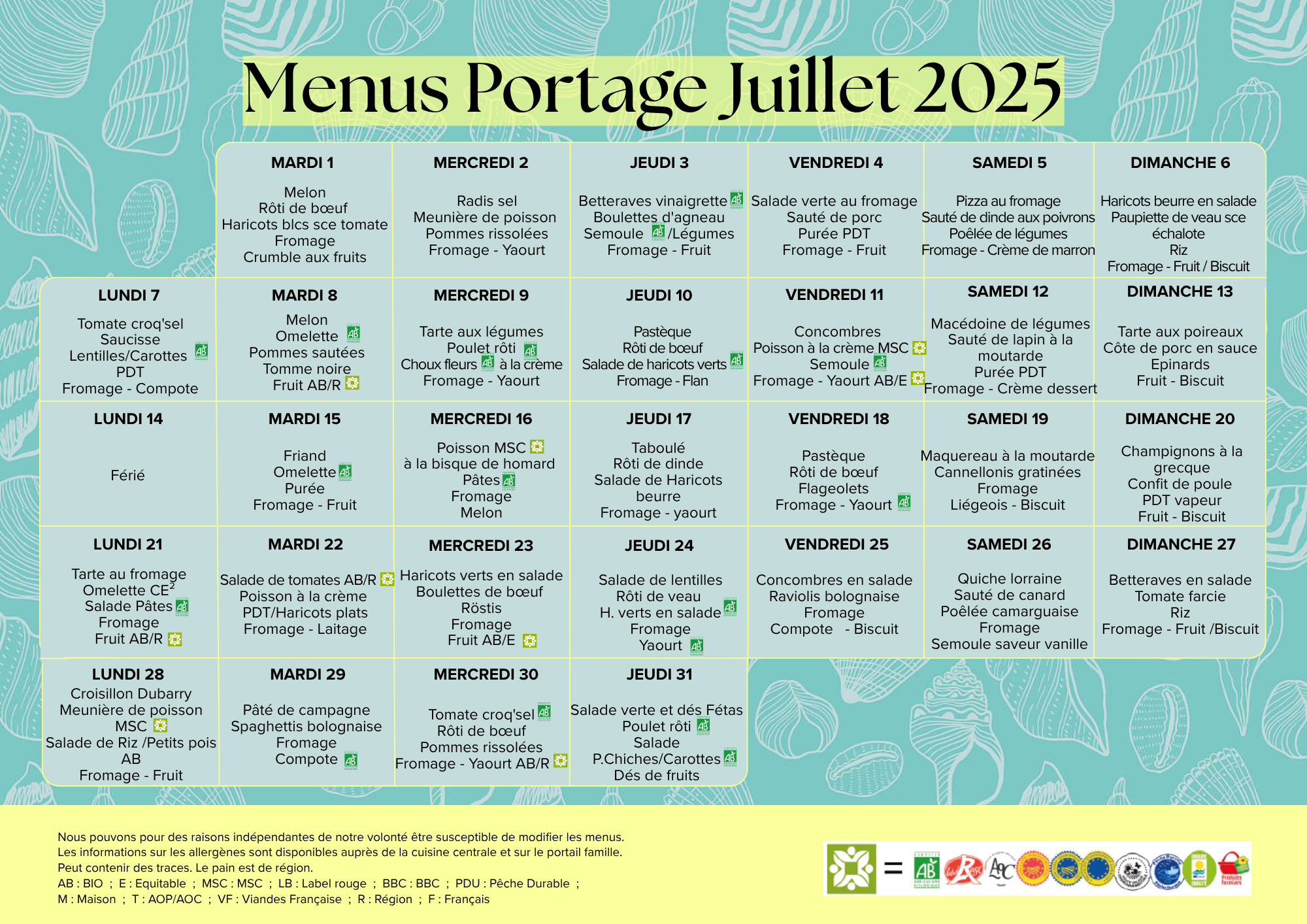 MENUS PORTAGE JUILLET 2025