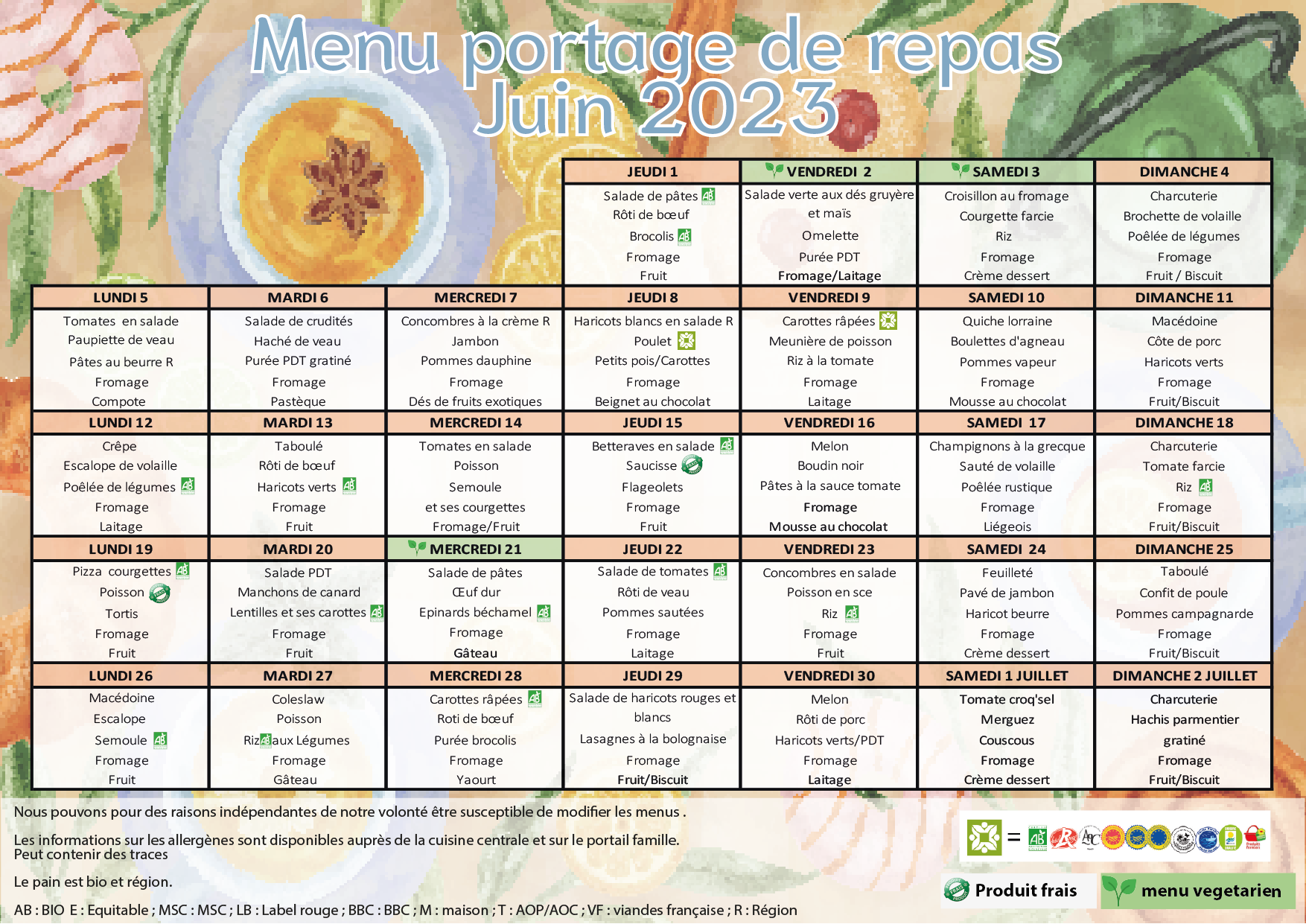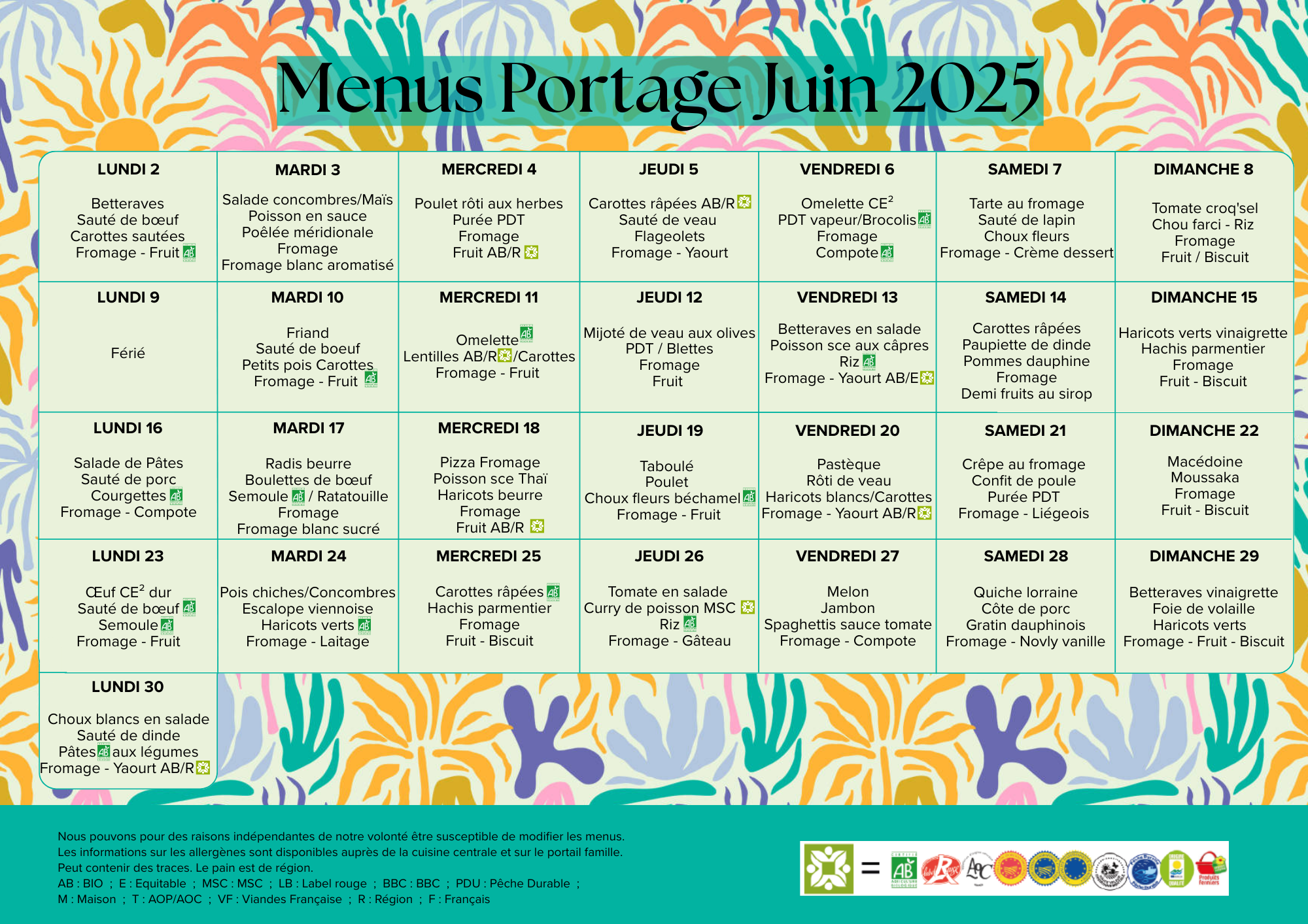 MENU PORTAGE JUIN 2025