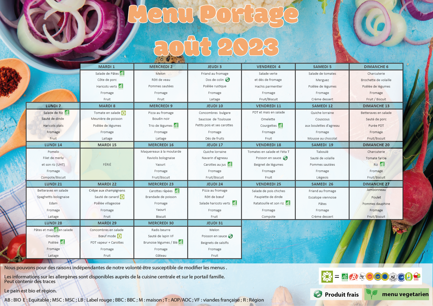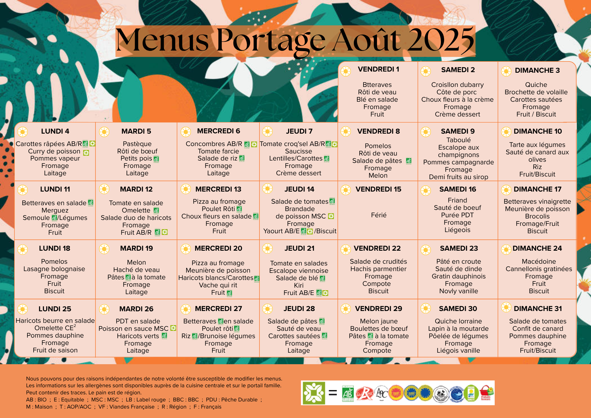 MENUS PORTAGE AOUT 2025