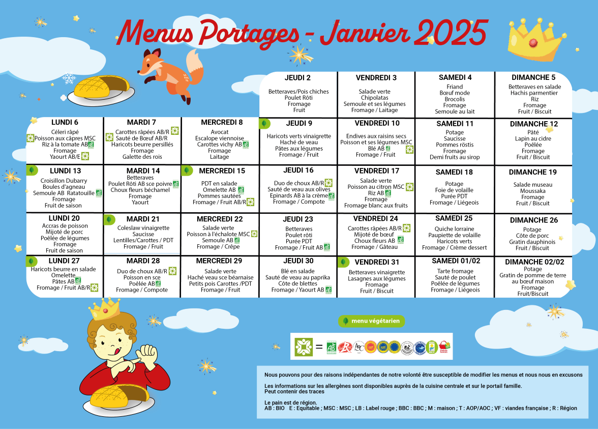 MENU PORTAGE JANVIER 2025