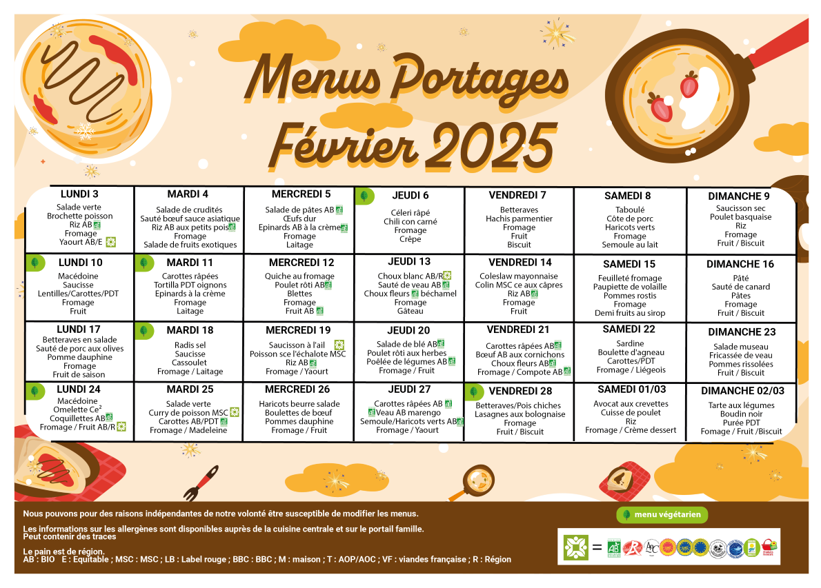 MENU PORTAGE FEVRIER 2025