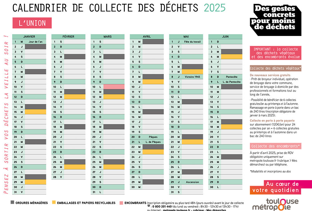 Pour toute question relative aux déchets, nous vous invitons à vous rapprocher du service compétent de Toulouse Métropole en appelant au 0800 201 440.