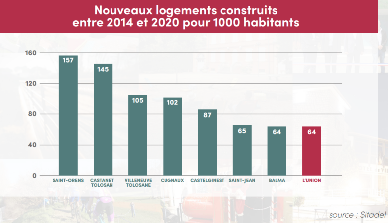 - Un urbanisme maîtrisé, L’Union se classant en dernière position, du point de vue des constructions, par rapport aux villes comparables de la métropole (Saint-Orens, Castelginest, Balma…).
