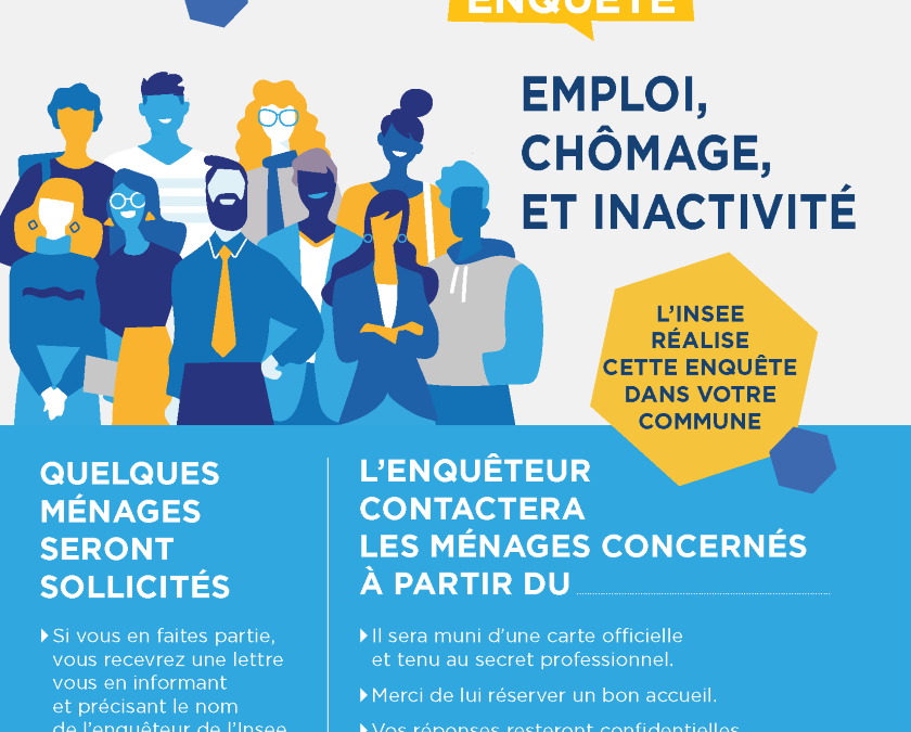 L’Institut national de la statistique et des études économiques (Insee) réalise une enquête statistique importante dans la commune afin de mieux comprendre l’évolution de l’emploi et du chômage. Un échantillon de logements sera interrogé entre le 24 février et le 16 mars 2025.