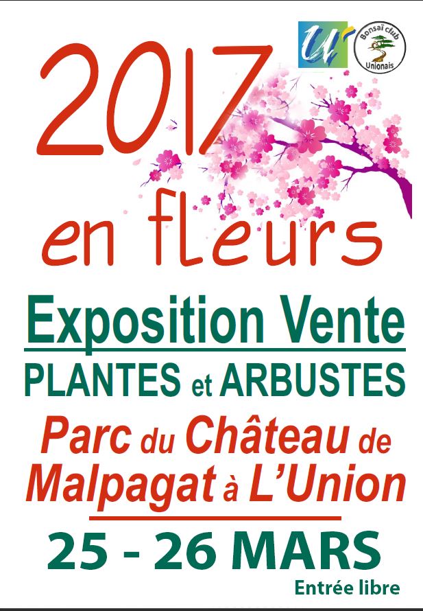 Comme chaque année, le BONSAÏ CLUB UNIONAIS organise dans le parc de Château de MALPAGAT, l’exposition de plantes et arbustes par des producteurs, le samedi 25 de 10 h à 18 h et le dimanche 26 mars 2017 de 9 h à 18 h. Des animations sont prévues par certains exposants samedi et dimanche.