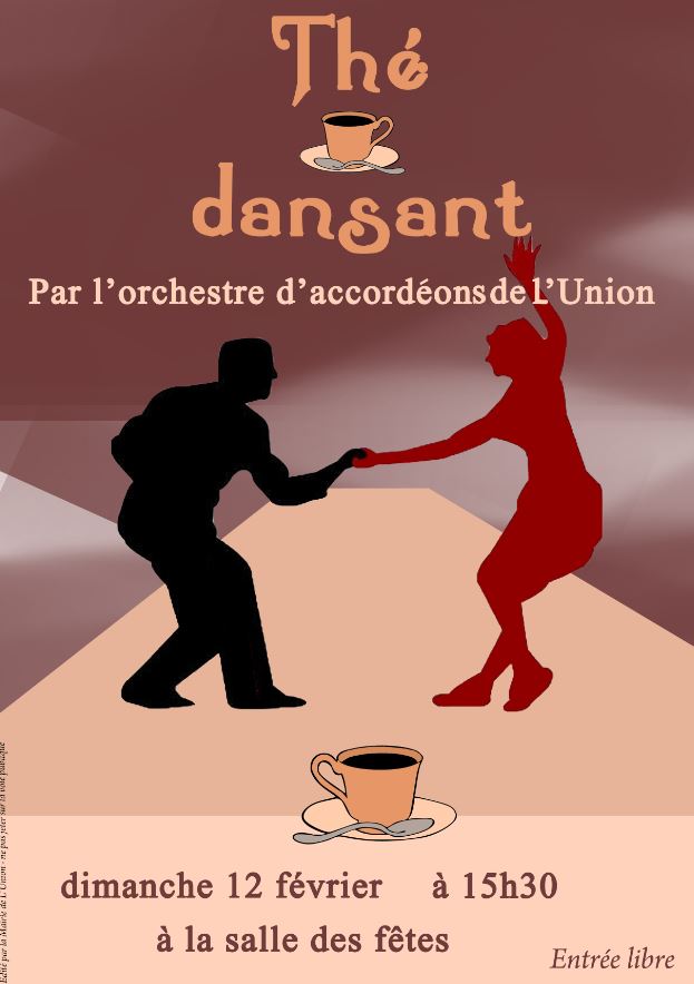 Le prochain thé dansant animé par l’Orchestre d’Accordéons de l’Union aura lieu le dimanche 12 février 2017. C’est une après-midi dansante à la salle des fêtes de l’Union à laquelle vous pouvez assister gratuitement à partir de 15h30. L’orchestre d’accordéon vous entrainera une nouvelle fois sur la piste pour des danses variées. Un