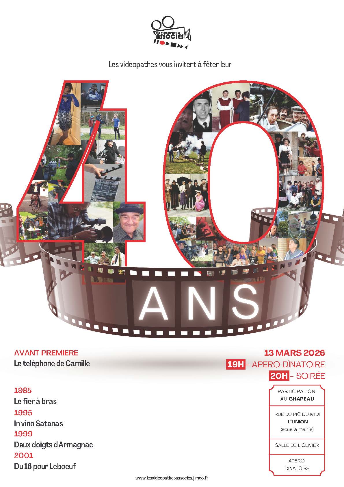 - Programme : rétrospective des films produits par l’association et diffusion du nouveau film « Le téléphone de Camille », principalement tourné sur la commune.