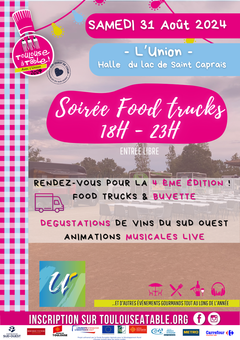 En partenariat avec Toulouse à Table, la quatrième édition de la soirée Food Truck se tiendra le samedi 31 août sous la Halle de Saint-Caprais, près du Lac, à partir de 18h30.