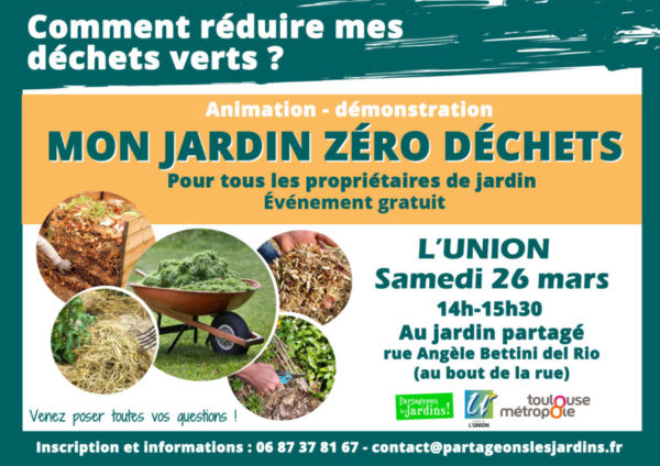 Samedi 26 mars, de 14h à 15h30, l’association Partageons les Jardins animera une animation-démonstration ayant pour thème Mon jardin zéro déchets au jardin partagé des Violettes à L’Union.