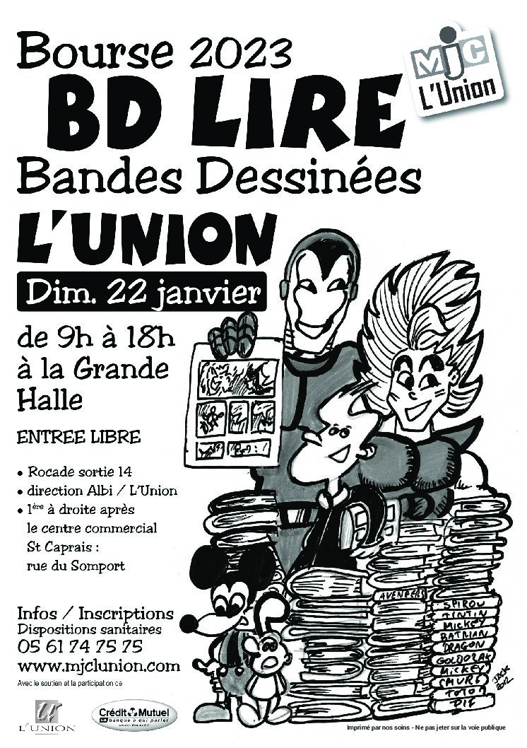 Nous vous attendons nombreux et nombreuses à la grande halle de l’union le dimanche 22 janvier 2023 de 9h a 18h. Vous permutez retrouver près de 70 exposants venant de tout le grand de la France. Albums de bd , dérivés tels quels des jeux de société ou affiches, fanzine ….