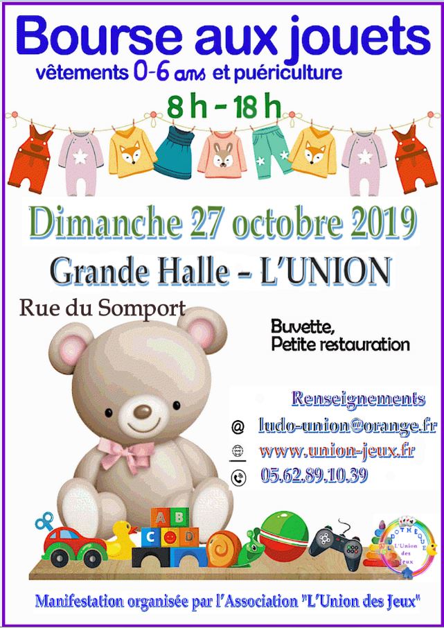 Le 27 octobre 2019 à L’Union, aura lieu la 7ème édition de la Bourse aux Jouets.