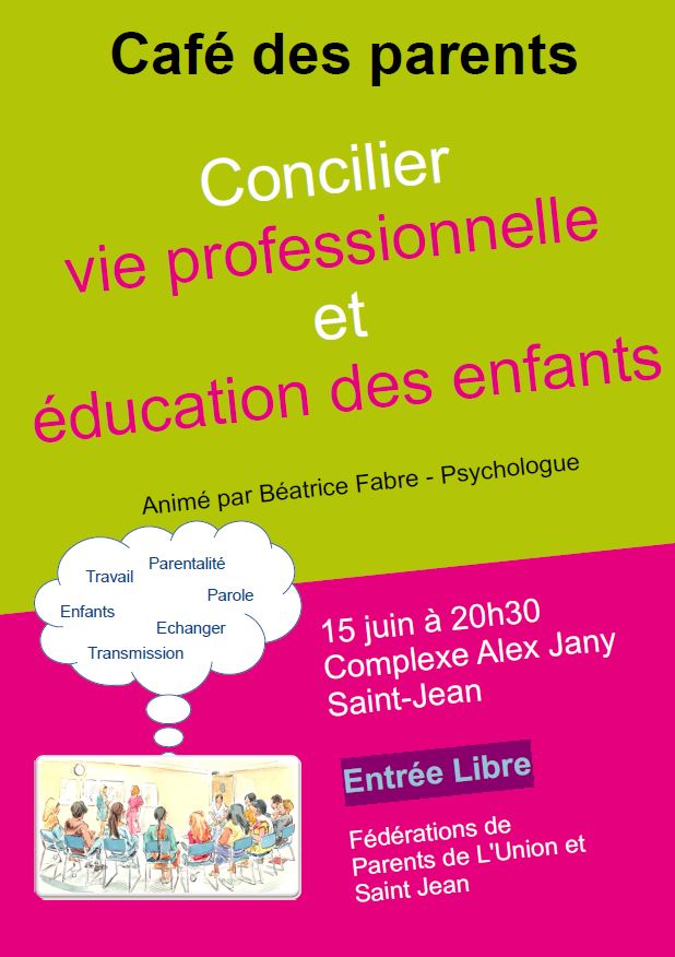 Ce café des parents organisé par les fédérations des parents d’élèves aura pour thème « Concilier vie professionnelle et Education des enfants ».