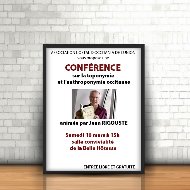 Néanmoins la conférence est accessible à tous, initiés ou non, et ne nécessite aucune connaissance de l’occitan. Venez donc nous rejoindre et découvrir en échangeant avec l’intervenant dans un esprit ludique et convivial l’origine insoupçonnée et parfois étonnante de noms de famille (pourquoi pas le vôtre) ou de lieu (villages, lieux –dits, rues etc…) du domaine occitan et notamment de l’Union que le conférencier a spécialement étudiée pour cette occasion.