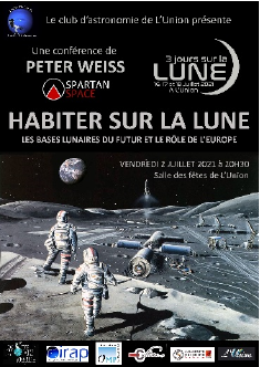 Conférence de Peter Weiss le vendredi 2 juillet à 20h30 sur le thème « Habiter sur la Lune » dans le cadre du festival « 3jours sur la lune » organisé par l’association Neptunion31.