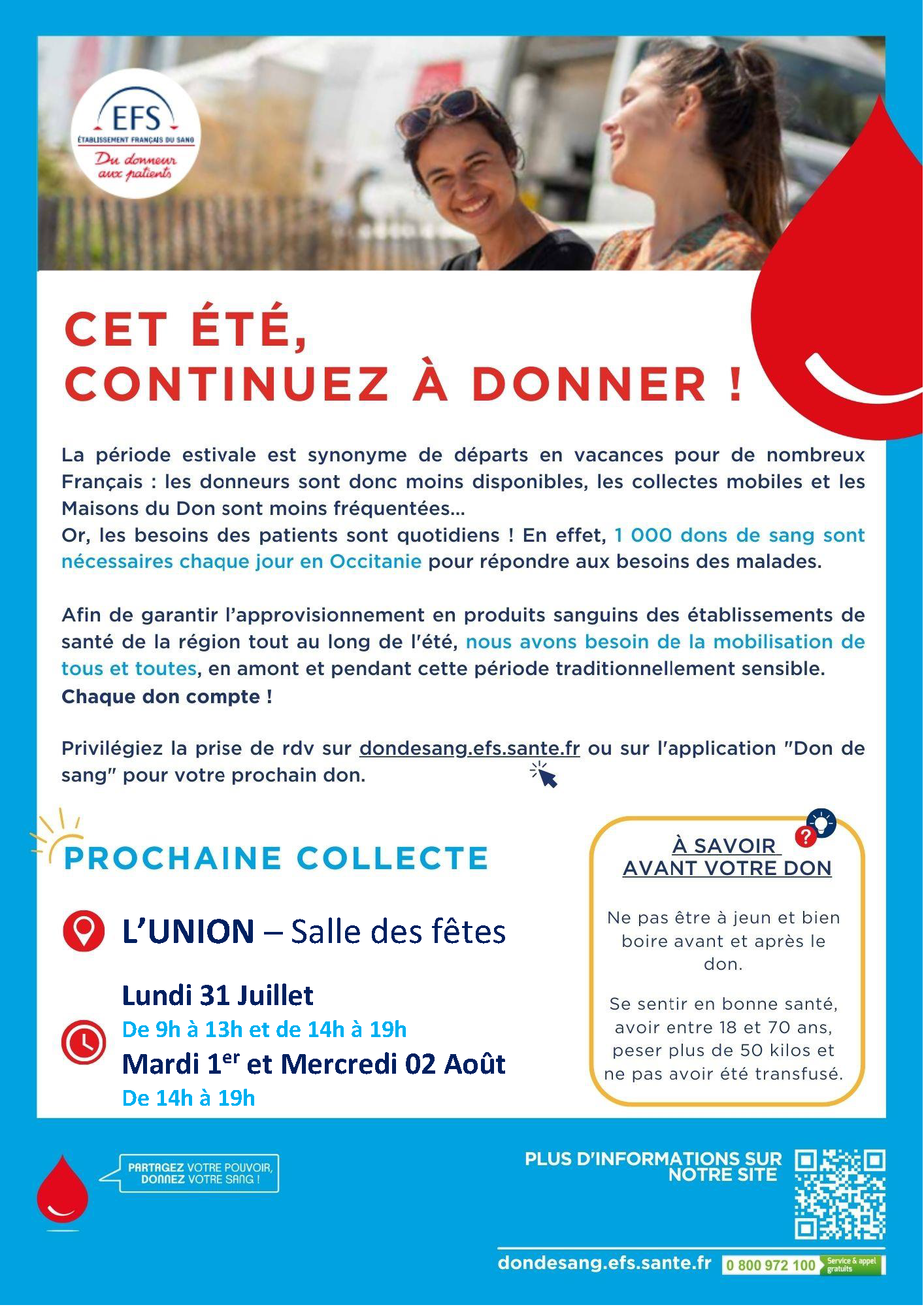 La collecte du don du sang aura lieu à la salle des fêtes.