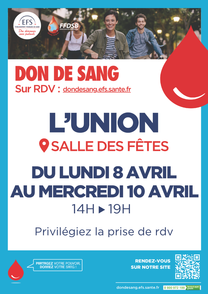La collecte du don du sang aura lieu à la salle des fêtes.