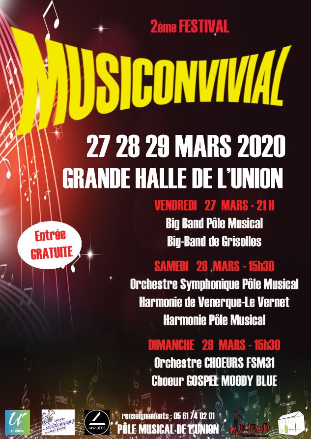 Avec l’arrivée du printemps, la musique se met en fête. Le Musiconvivial est de retour : événement exceptionnel, trois jours de musique organisés par le Pôle musical et la ville de l’Union