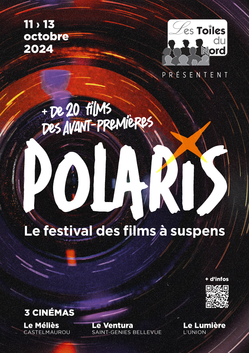 Le Festival des films à suspens POLARIS du 11 au 13 octobre organisé par LES TOILES DU NORD (association qui regroupe le Lumière,le Méliès de Castelmaurou et Le Ventura de Saint-Geniès)