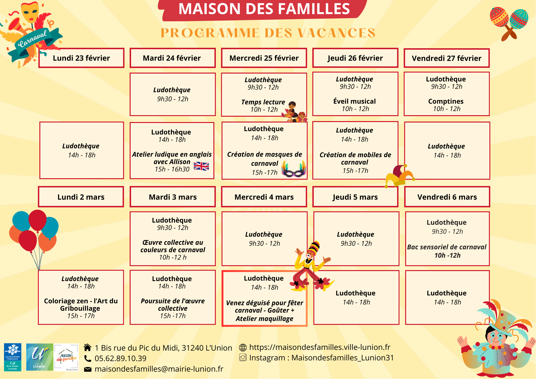 Le programme de la Maison des Familles, pour les vacances de février, est placé sous le thème du carnaval.