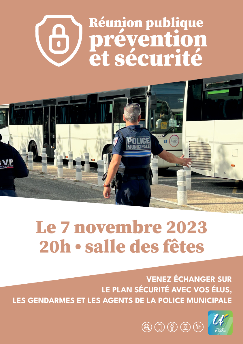 Le 7 novembre prochain, élus, agents de la Police Municipale et représentants de la Gendarmerie proposeront aux Unionais une réunion publique dédiée à la sécurité.