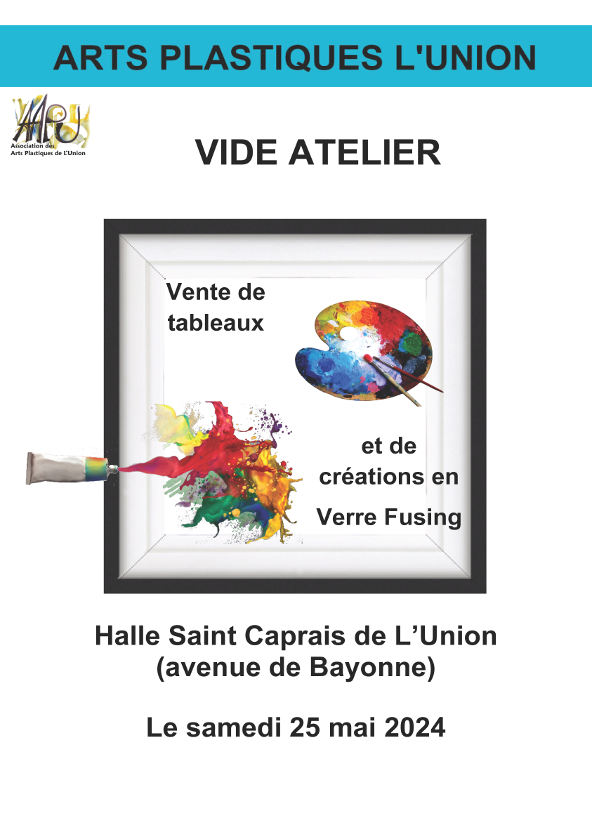 Le 25 mai 2024 – de 9h à 18h – Vide Atelier organisé par l’Association des Arts Plastiques de L’Union – Salle Laroussinie et Halle couverte Saint Caprais, route de Bayonne (près du lac). Des adhérents et artistes de l’Association vous présenteront des œuvres.