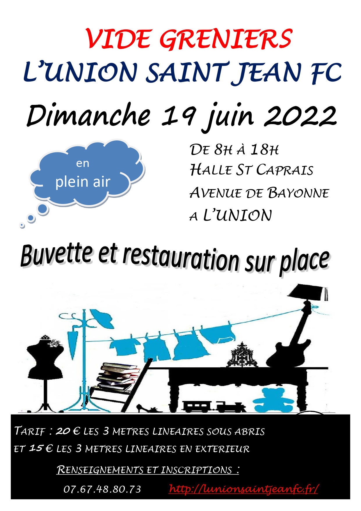 Vide grenier organisé par L’Union Saint-Jean Football Club à la halle couverte Saint Caprais.