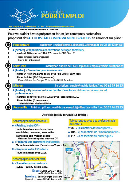 Cette année à Aucamville, c’est à minima 50 entreprises et une dizaine d’acteurs de l’emploi qui feront le déplacement afin d’accueillir celles et ceux qui sont en recherche d’emploi ou de conseils.