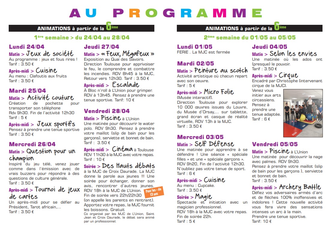 Vacances d’Avril : 26,27 et 28 avril 2023.