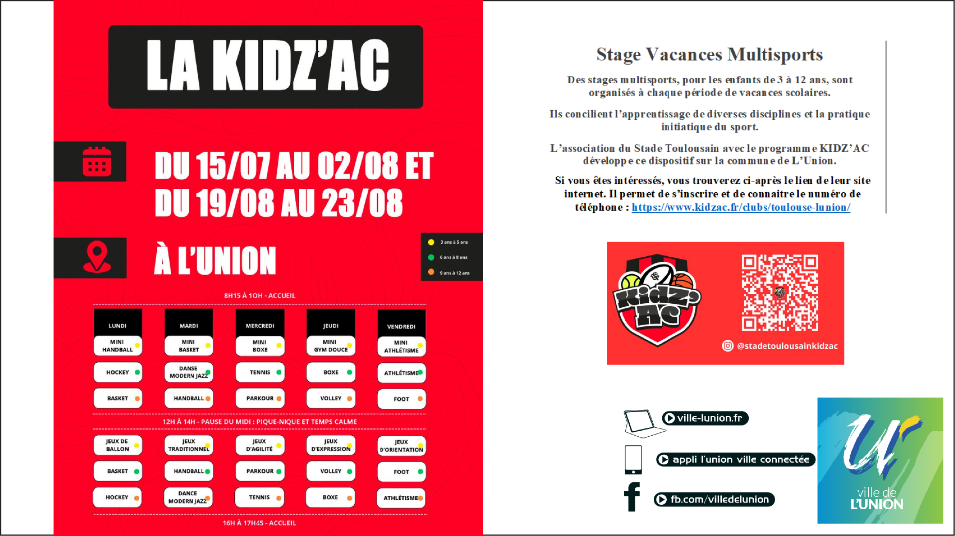 L’association du Stade Toulousain avec le programme KIDZ’AC développe ce dispositif sur la commune de L’Union.