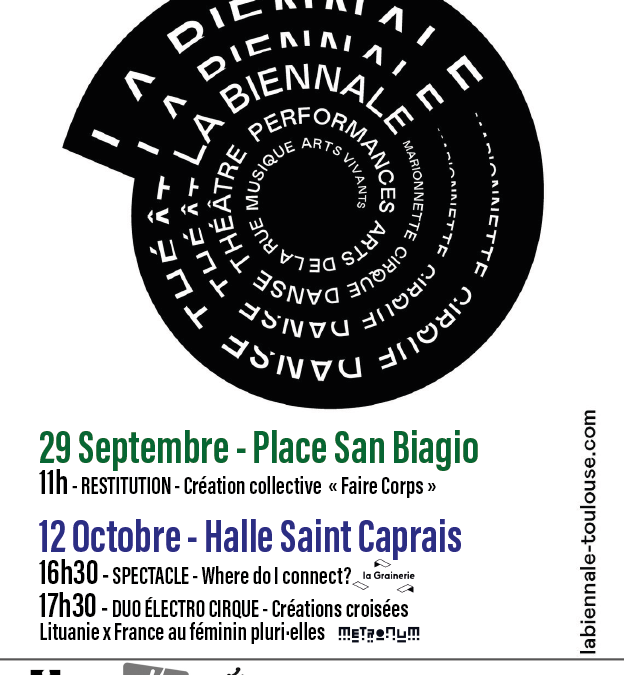 La Biennale, Festival international des arts vivants, est le rendez-vous culturel de la rentrée, temps fort foisonnant et festif sur l’ensemble de la métropole toulousaine. Pendant plus de deux semaines, La Biennale accueille des artistes des quatre coins du monde et nous offre à voir la richesse de la création contemporaine en proposant une programmation pluridisciplinaire intense et originale dans l’espace public et dans plus de 25 lieux. La Biennale fédère une quarantaine de partenaires culturels qui imaginent une rentrée populaire, audacieuse et cosmopolite pour nous inciter à faire un pas de côté en ouvrant nos regards sur de nouvelles facettes du spectacle vivant d’aujourd’hui. Pour la troisième édition nous vous donnons rendez-vous du 27 septembre au 12 octobre 2024.
