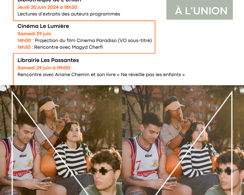 - Carte blanche à Magyd Cherfi : rendez-vous à 14h00 au cinéma Le Lumière pour la projection du film « Cinema Paradiso » de Giuseppe Tornatore en Version Originale sous-titrée français – en compagnie de Magyd Cherfi