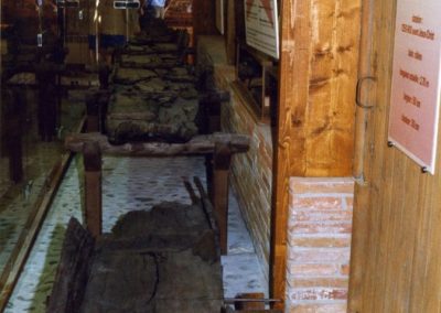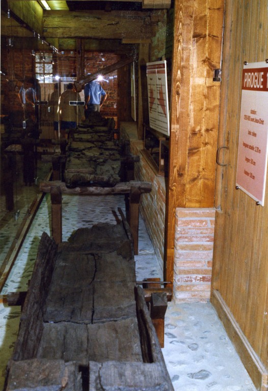 – La première datant de l’âge de bronze (1800 à 700 ans av. J.C.) elle est creusée dans un tronc de chêne. Mesurant plusieurs mètres de long elle servait sans nul doute au transport.