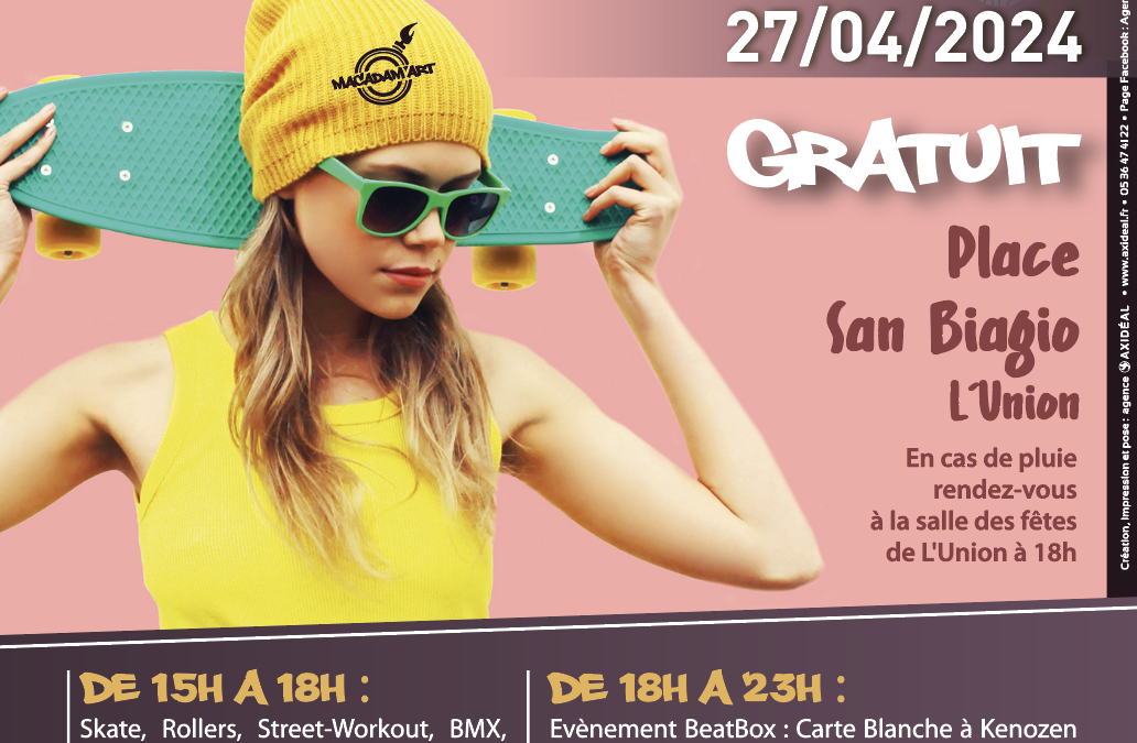 Ce samedi 27 avril, la MJC de L’Union (en partenariat avec celle de St Jean) organise le festival de cultures urbaines Macadam’Art sur la place San Biagio à L’Union.