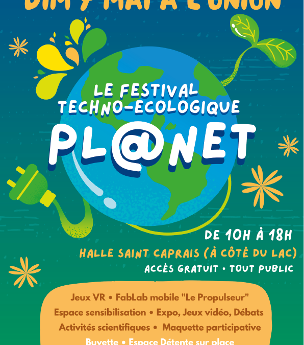 Les jeunes de la MJC organisent le dimanche 7 mai de 10h à 18h à la Halle St Caprais au lac de L’Union le festival Pl@net sur la thématique de l’environnement et des nouvelles technologies.