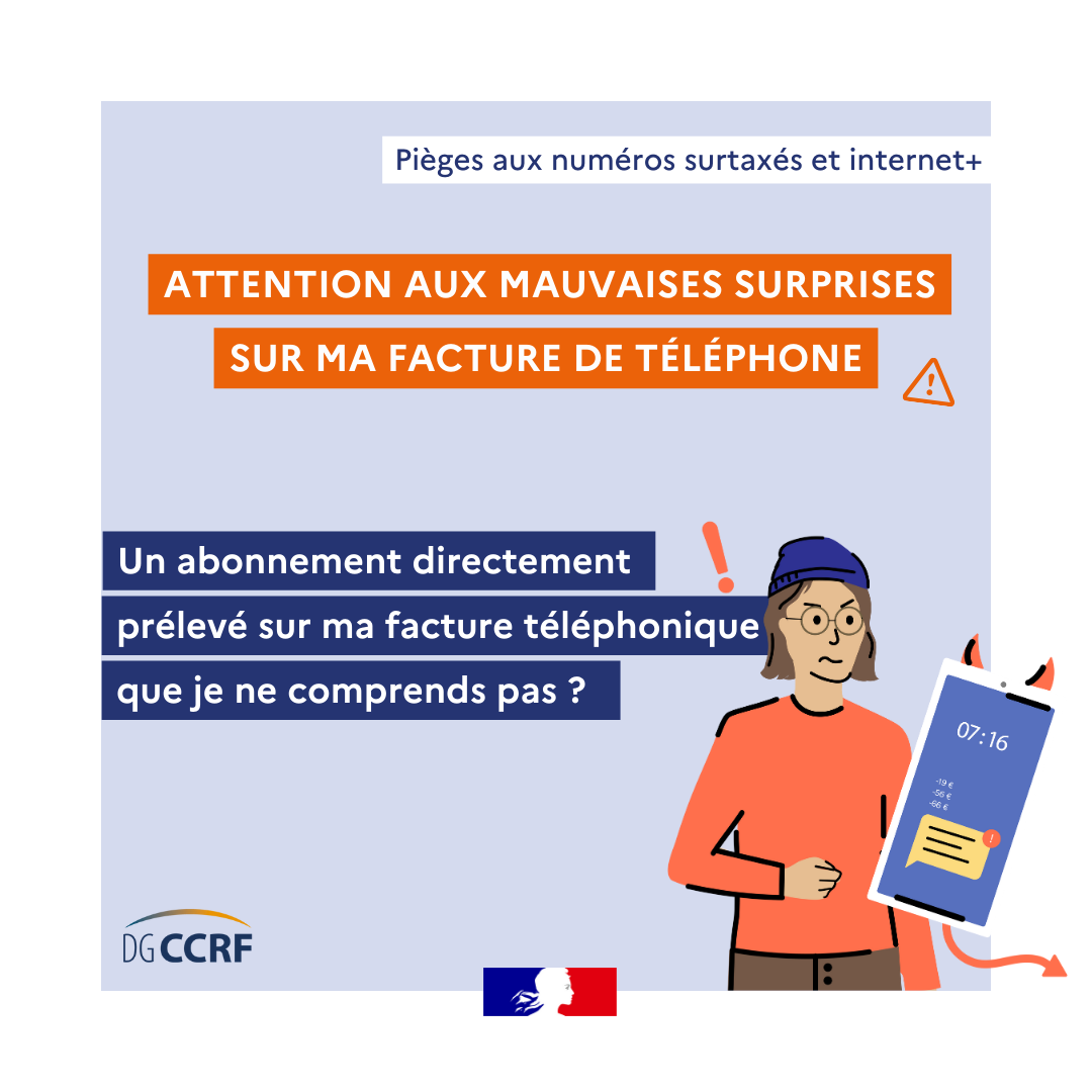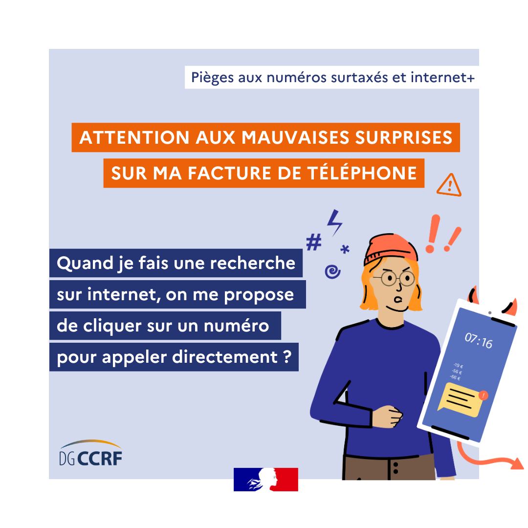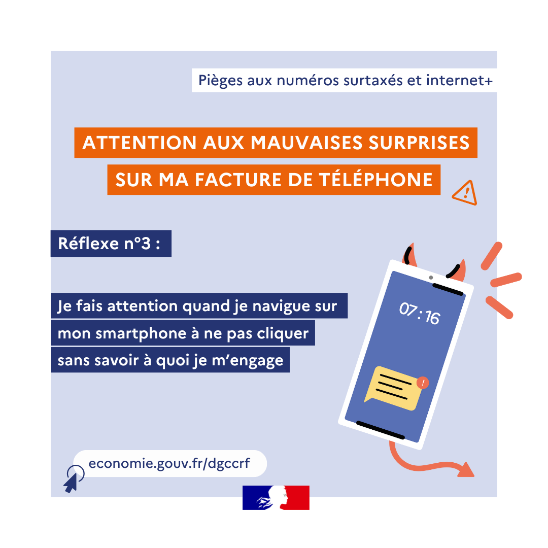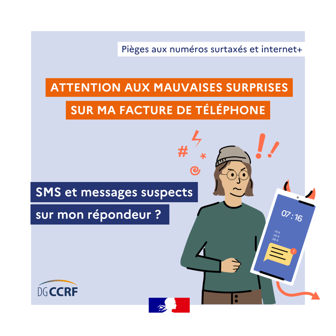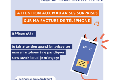 Lorsque vous naviguez sur internet ou lorsque vous recevez un SMS ou un message sur votre répondeur, soyez vigilants. De nombreuses arnaques aux numéros surtaxés et abonnements internet existent. Suivez les conseils de la DGCCRF et évitez les mauvaises surprises sur votre facture de téléphone.