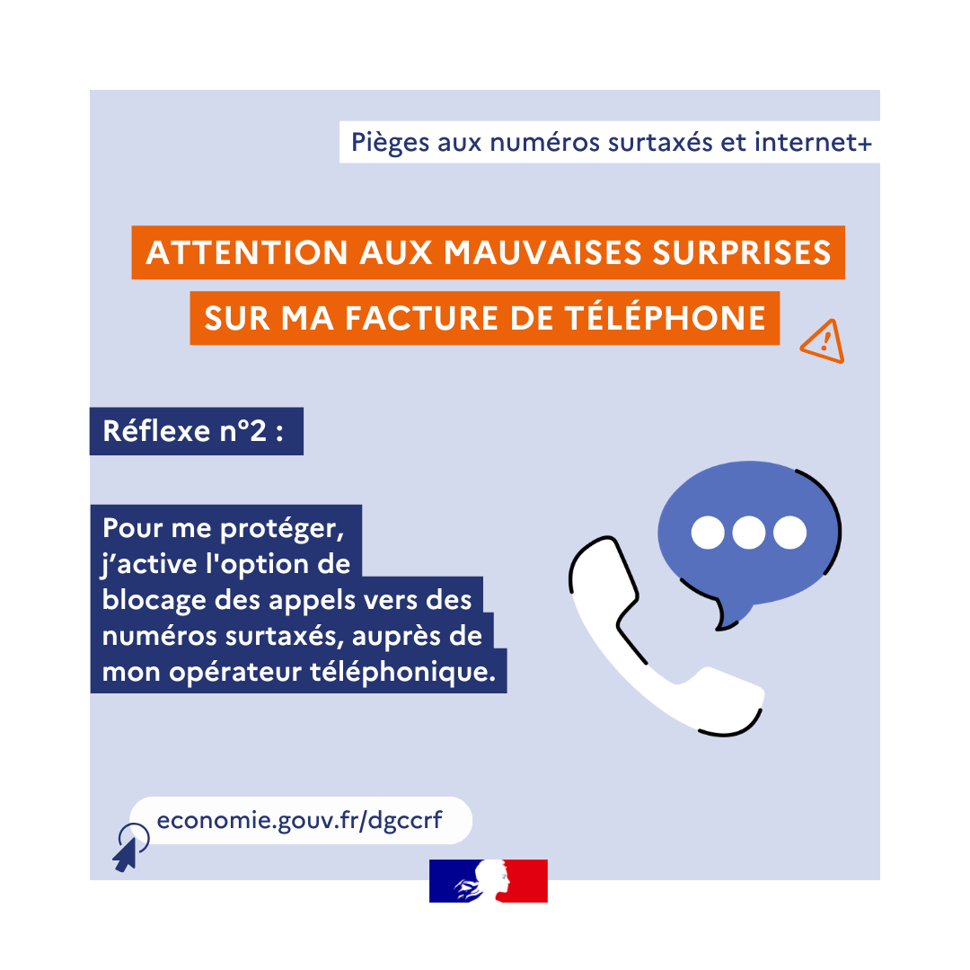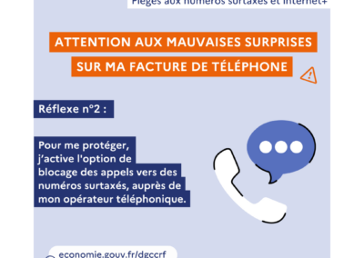 - Je me protège en activant l’option de blocage des appels vers des numéros surtaxés auprès de mon opérateur téléphonique.