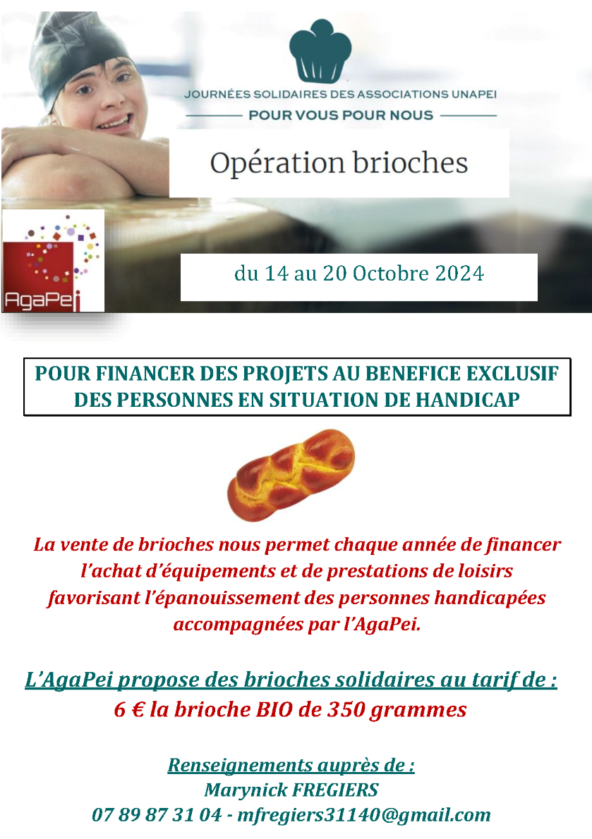 L’an dernier, avec près de 36000 brioches vendues, dont 26000 dans le seul département de la Haute-Garonne, ils ont pu financer de nombreux projets au bénéfice exclusif des personnes en situation de handicap accompagnées par les équipes éducatives des établissements et services de l’AgaPei.