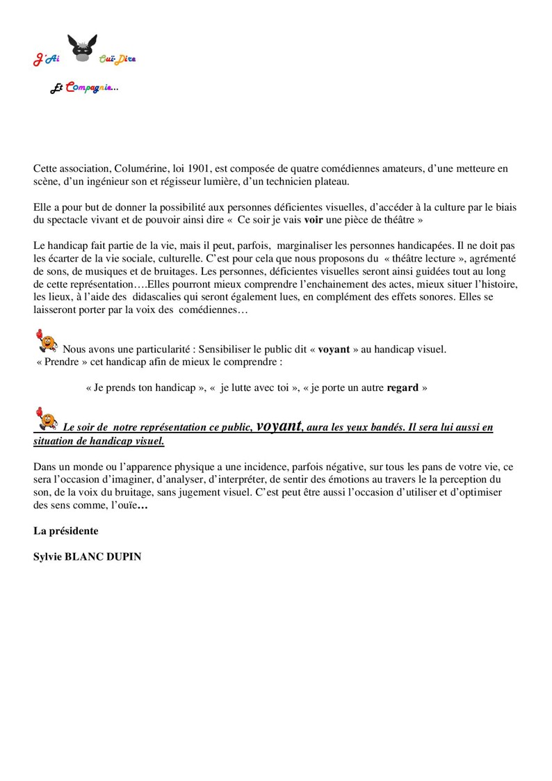 Elle sera donnée en audiodescription. Cette représentation est « libre au chapeau »
