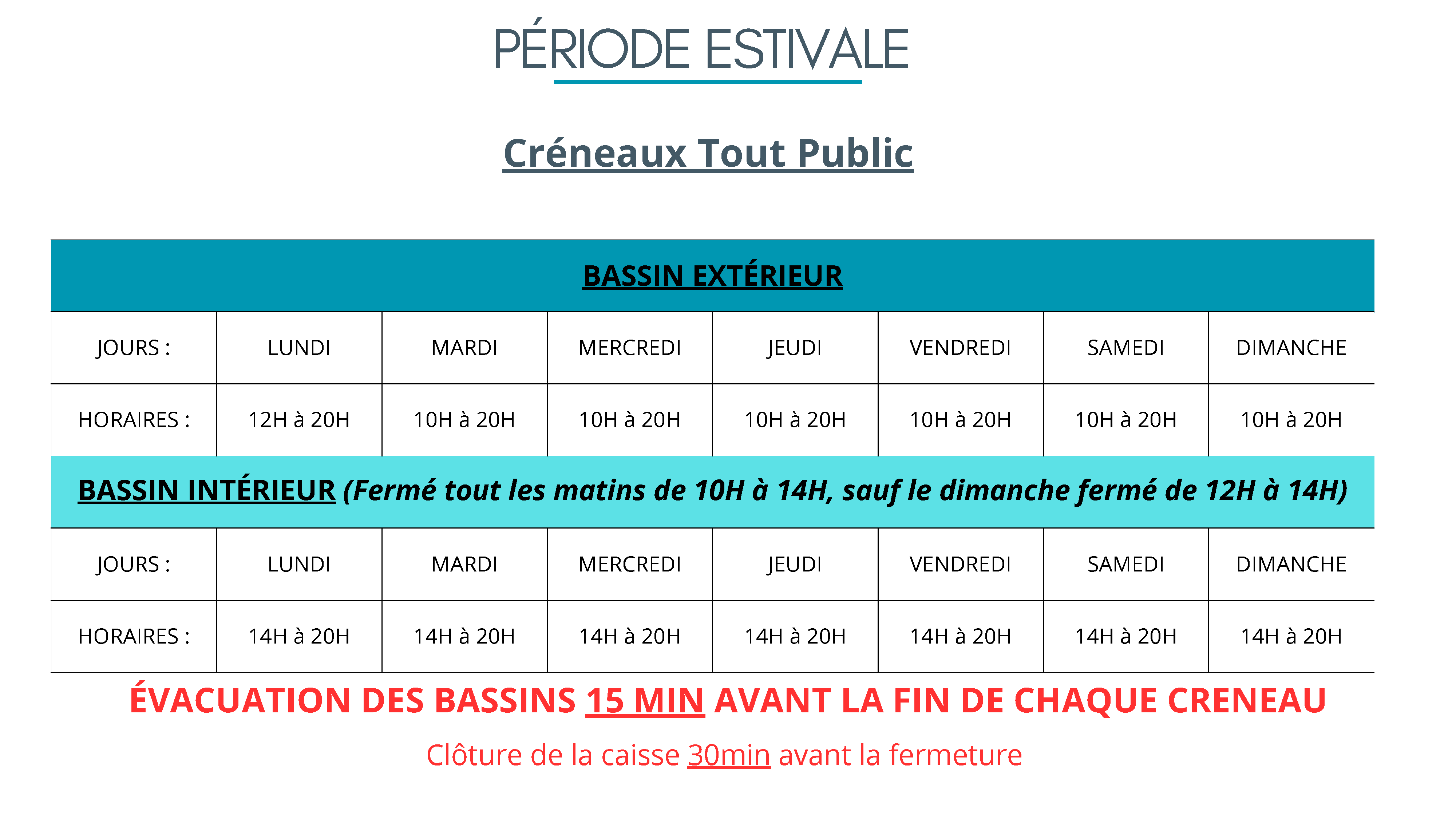 Pour information, la caisse ferme 30 min avant la fin de chaque créneau d’ouverture public.