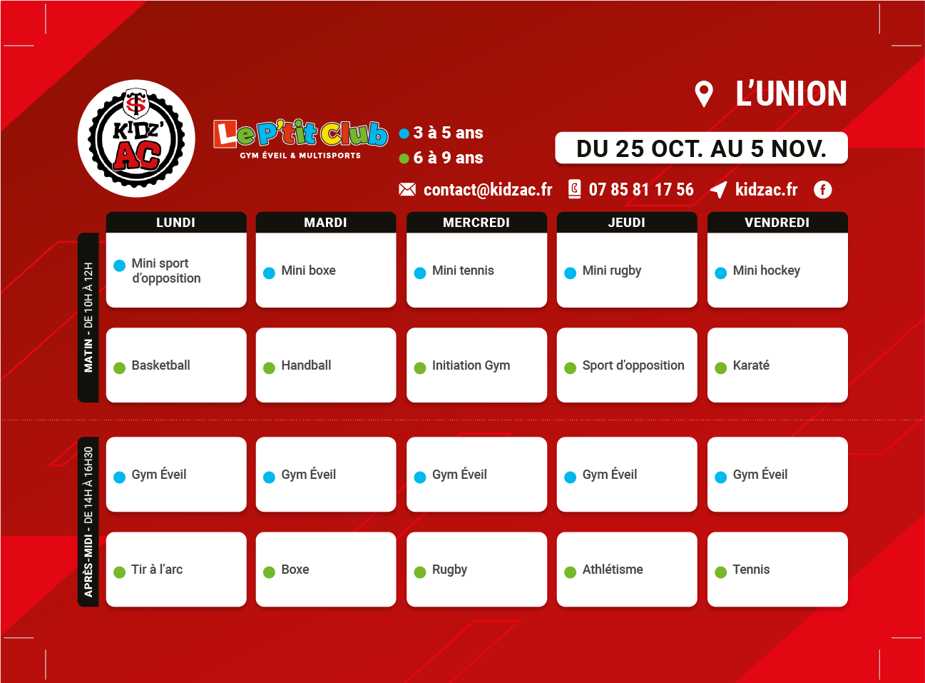 Les prochains stages vacances multisuports de Kid’Z Ac reprennent aux vacances de la Toussaint.