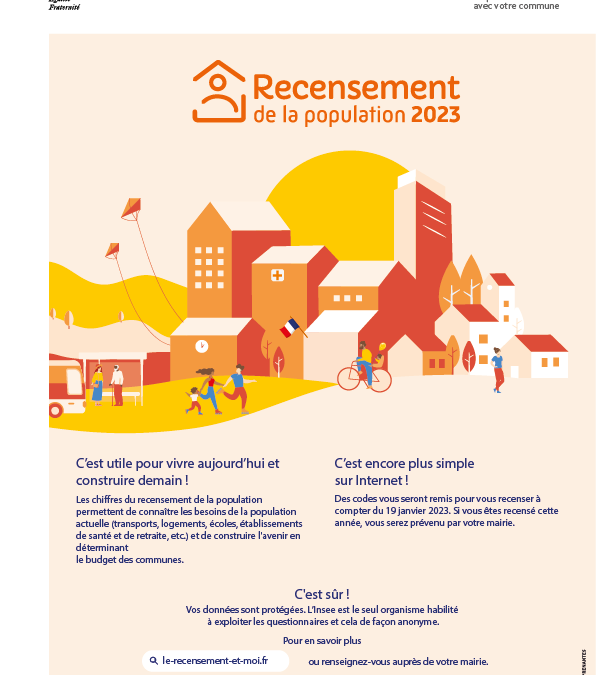 Le recensement de la population : c’est utile, c’est simple, c’est sûr. La collecte se déroulera du 19 janvier au 25 février 2023. 3 agents recenseurs disposant d’une carte d’identification seront habilités à faire le recensement. Dans un premier...